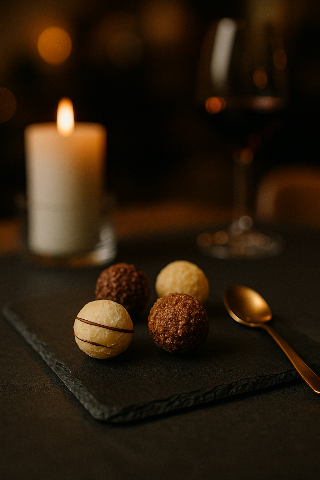 Mit Liebe gefertigt, mit Leidenschaft verfeinert: Unsere handgemachten Pralinen vereinen feinste Schokolade, edle Zutaten und traditionelle Handwerkskunst zu einzigartigen Genussmomenten.