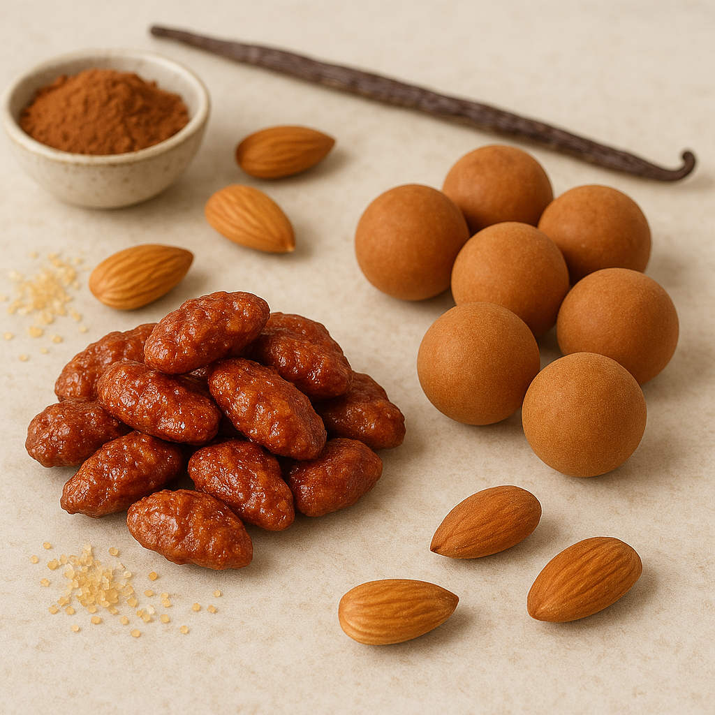 Knusprig karamellisierte gebrannte Mandeln und zart schmelzende Marzipankartoffeln – zwei Klassiker, die Kindheitserinnerungen und Weihnachtsmarktzauber wecken.